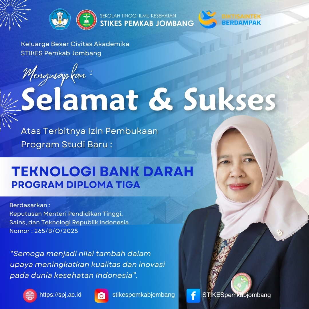 STIKES Pemkab Jombang resmi membuka Program Studi Diploma Tiga (D3) Teknologi Bank Darah sebagai bagian dari pengembangan institusi dalam menjawab kebutuhan tenaga kesehatan terampil di bidang pelayanan transfusi darah. Program studi ini hadir sebagai respons terhadap meningkatnya permintaan profesional yang kompeten dalam pengelolaan darah dan komponennya secara aman dan efisien.